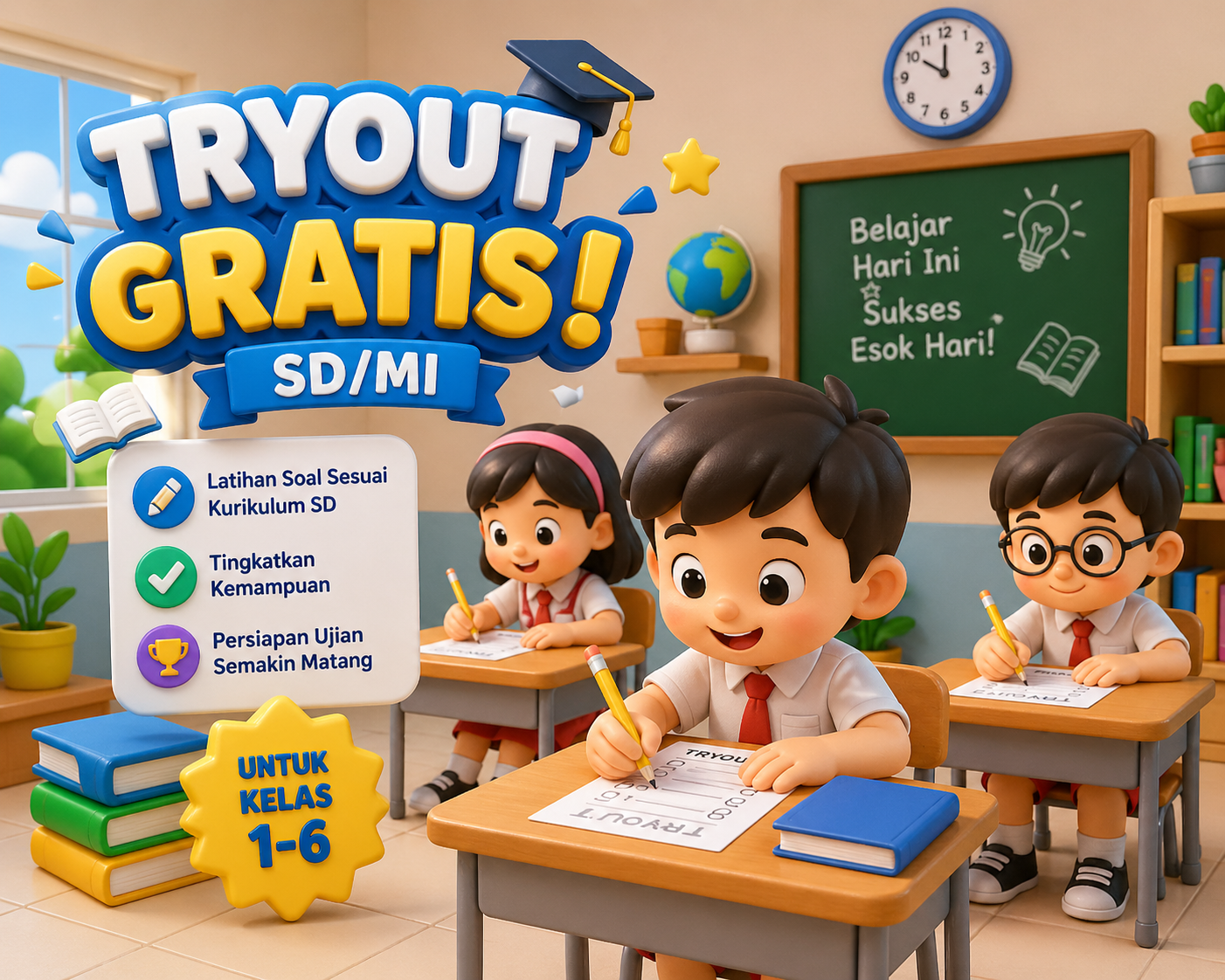 Tryout ini meliputi mata pelajaran Bahasa Indonesia, Matematika dari kelas 1 SD sampai dengan Kelas SD