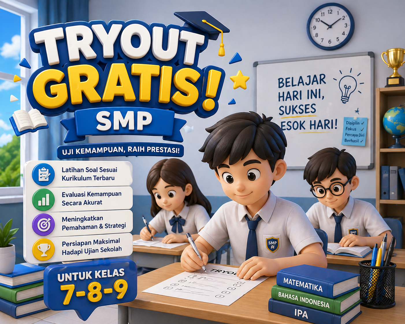 Tryout ini meliputi mata pelajaran Bahasa Indonesia, Matematika dari kelas 1 SD sampai dengan Kelas 9 SMP